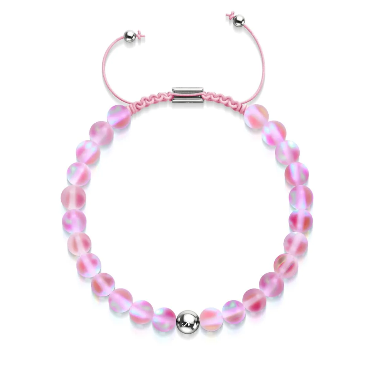 Pink | Silver | Mermaid Glass Macrame Bead Braceletā
